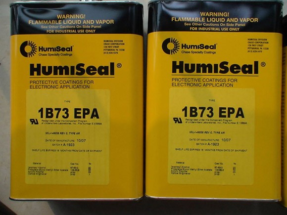 HumiSeal绝缘防潮液1B73、1B73LOC、1B73EPA 丙稀酸树脂敷层系列产品,鉴于它易于使用,易清除的特性,已成为市场上最受客户欢迎的涂覆产品.它能迅速干燥,短时间内达到理想的物理特性,防菌防潮,延长组件使用寿命.该产品在固化时不会对热敏组件造成损害,固化不收缩,有良好的防潮性能,抗冷凝效应.局部返修时,只需局部涂布溶解即可进行. HumiSeal 1B73、1B73LOC、1B73EPA 快速固化,无色透明. 亦有气溶胶罐包装. 高防潮绝缘性能. 良好柔韧性. 含荧光剂. 使用方便. 符合规格:MIL-I-46058C和IPC-CC-830. HumiSeal 1B73、1B73LOC、1B73EPA 快速固化(空气固化),无色透明. 柔韧性薄膜. 固化薄膜焊接无残留. 含荧光剂. 符合规格: UL和MIL-I-46058C.