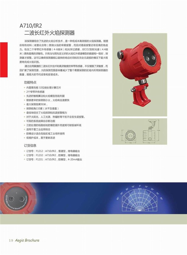 翼捷A710系列火焰探测器提供了新一代火焰探测的能力和技术标准。该系列探测器基于共同的硬件平台,使用了专门设计的窄带红外传感器件和紫外传感器件,再通过内置的32位微处理器和专利信号处理算法,更加有效地识别和区分火焰辐射与非火焰辐射(干扰源),即便在有误报警源和环境中有红外辐射体存在的情况下依然能提供连续的火焰探测保护,实现了长距离、大范围探测需求情况下高灵敏度与低误警的完美结合。