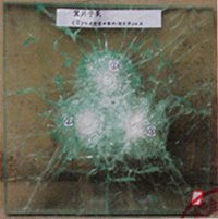 H类防弹玻璃::能够阻挡弹头穿透,受冲击玻璃背面无碎片剥落的防弹玻璃。