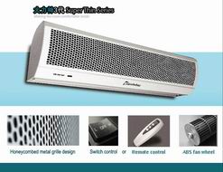风幕机又称空气幕、风帘机、风闸、空气门,英文名称:air curtains、air door、air curtain,风幕机产品广泛应用于工厂、商店、餐厅、药店、冷库、宾馆、医院、机场、车站等环境的出入口上及一切装有空调器的场所,应用特制的高转速电机,带动贯流式、离心式或轴流式风轮运转产生一道强大的气流屏障,能有效的保持室内空气清洁,阻止冷热空气对流,减少空调能耗,防止灰尘、昆虫, 及有害气体的侵入,提供一个舒适的工作、购物、休闲环境