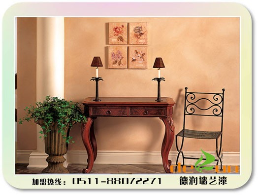 德润墙艺漆以其时尚、自然、变化无穷的立体化纹理,展现独特的空间魅力,微妙而生动,令人耳目一新。这种新型内墙艺术墙面材料,把传统乳胶漆、涂料的单调、单色、平滑型时代带进了天然环保型、质感、纹理、个性色彩装饰的全新时代,想要好项目创业,想要艺术墙面创业,联系我们,你会了解更多。