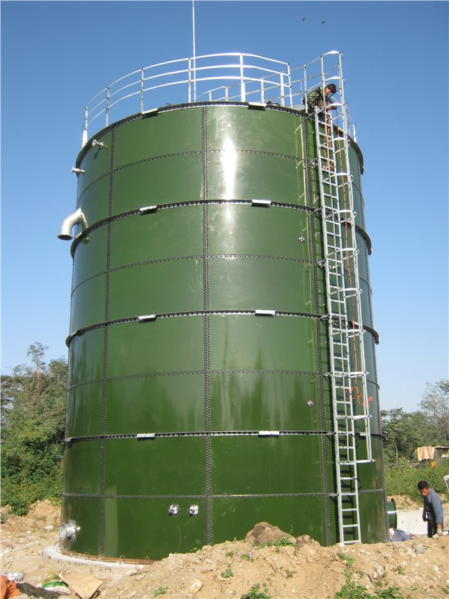 搪瓷用钢板为钛合金专用钢板,强度为普通钢板的两倍,常用库存钢板厚度从3mm~8mm。钢板的内外两面喷上底釉和面釉,烘干后经过900℃高温加热,使钢板表面形成0.3mm厚的搪瓷涂层,搪瓷涂层不仅能阻止罐体钢板腐蚀,而且具有抗强酸,强碱的功能,并具有极强的抗磨损性。搪瓷钢板耐腐蚀特性非常适合在沼气能源领域应用,钢板之间的拼接,采用了钢板相互搭接和自锁螺栓连接形式,专用的密封材料镶嵌在两板重叠之间,达到了快速低耗的安装要求。罐体搪瓷钢板顶盖可保持5kpa的压力,罐体也可与膜式沼气储存柜组合,做成发酵产气与气体储存一体化装置。本公司可根据客户的需要用搪瓷钢板拼装成20~3000m3大小不同的储罐。方便客户的使用。可用于污水处理、沼气工程、粮食储藏、石油化工等行业中的气体、液体和固体的密封储藏。在沼气工程中,拼装罐是各种有机物(如动物粪便、污水、秸秆等发酵原料)的储存和发酵的容器。