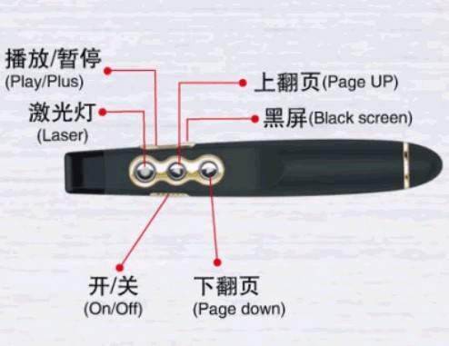 本产品是一个无线演示器,具有遥控翻页、激光教鞭功能。 是专门为介绍产品、教学、会议、演讲、培训等用途设计的便利手持设备。它由两部分组成:发射器和接收器。