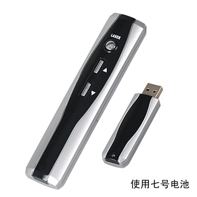 本产品是一个无线演示器,具有遥控翻页、激光教鞭功能。 是专门为介绍产品、教学、会议、演讲、培训等用途设计的便利手持设备。它由两部分组成:发射器和接收器。
