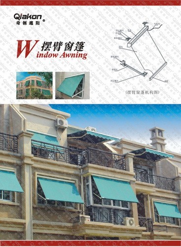 主要是窗、门的户外遮阳使用,它具有体积小、调幅大、结构新颖、美观大方、节能环保等特点。它具备遮阳、挡尘、阻挡热辐射等功效。使用摆臂窗蓬可以阻挡60-75%的热辐射,是最理想的窗、门户外遮阳精品。系统部分使用年限7年以上,面料采用新型遮阳面料,,防雨、抗霉、抵挡热量及紫外线,适合于家庭、咖啡馆、宾馆、酒店等场所的外遮阳使用。面料上可根据需要印制LOGO或广告语。根据环境尺寸定做。