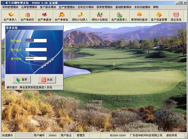 《彩艺印刷管理软件》针对印刷行业的“订单数量多、交货期短”的行业特点,开发一套专业的印刷管理系统,可以满足印刷企业从接单、下生产单、生产审批、物料消耗采购、材料领用、生产过程跟