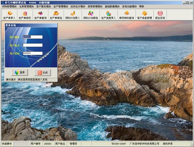 为满足印刷企业按标准化流程运转的需要,开发了一套针对方面的管理系统——《彩艺印刷管理软件》UV胶印版,适合UV印刷、软硬胶片企业使用。