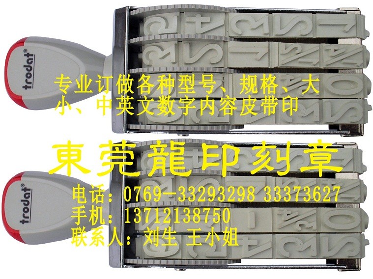 订做、改装中英文皮带转动印,编号按客户要求搭配,8位数(字带)总带宽15(毫米)印字手感极好,清晰度高。◆可订做0.5mm字体,款式齐全.每条带可以随意转动不同的数字、字母、标点符号、也可来样订做,我司有专业制作皮带技术员,转动皮带印橡胶采用进口材料,耐各种不灭印油、油墨、塑钢结钩架子、价格优惠,交货快,欢迎惠顾。◆规格列系 :D-5、D-4、D-3、通用新力皮带号码转动印章系列:◆3毫米:N-56、N-58、N-510、N-512 。◆4毫米: N-46、N-48、N-410、N-412、N-415、N-416。◆5毫米:N-36、N-38、N-310、N-312、N-314、N-310A。◆ 7毫米:N-26、N-28、N-210 。◆毫米:N-16、N-18、N-110 。11毫米: N-06、N-08 。15毫米:N-A6、N-A8 、现货充足,(备注)皮带号码转动印章每一条带上有常规标点符号,用老牌就是用好牌3、刻印章,东莞印章刻制,东莞印章制作,东莞原子印章,东莞日期印章,东莞回墨印章,东莞皮带印章