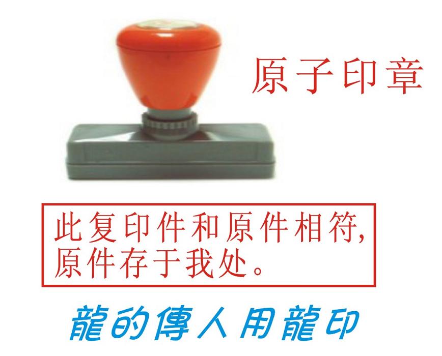 原子印特点:原子印是采用1972年美国庄臣公司发明的原材料制作而成,龙印原子印是目前商务活动中广泛应用的印章之一,属国际第二代产品,外形美观,印面清晰,无需印台、无需加油,即盖即干,携带方便,绝不褪色等特点,机器检测可以使用36000次以上。适用于:各类部门章。合同专用章、业务专用章、报关专用章及其他工作用章等。不适合银行印签印章。电子印 印迹清晰,字迹的干涸时间短,附着力强,具有较强耐水性。成品外形美观、结构合理。使用次数为2-3万次。渗透印特点:渗透印:印迹较原子印略次,自带印油,使用方便,可反复加油使用。经济耐用,携带方便。但章迹干涸时间较长,使用次数为1-2千次,并可反复注油。适用于做地址、公司名称、文件更改、邮件收发印等方面适用于:发票专用章、合同专用章、业务专用章、报关专用章及其他工作用章等