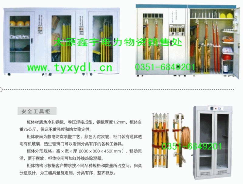 太原市鑫宇电力物资主要产品:电力安全工具、电力设备、力学性能测试机(万能拉压力试验机)、电力安全工具柜、双背全方位保护式安全带、铜防水型端子、接线端子、高压验电器、力学性能试验机、绝缘靴测试仪、电厂专用接地线、个人保安线、携带型短路接地棒、中置柜接地线、液压开孔器、母线弯曲机、液压冲孔器、螺母切开器、避雷器、环网柜接地线、混凝土杆转运车、安全帽、伸缩验电器、智能安全工具柜等