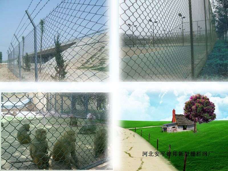 本厂生产的护栏网、防护网、围墙网、金属网、隔离网、丝网、勾网系列,网幅宽,丝径粗,不易腐蚀寿命长,用处广泛,饲养鸡、鸭、鹅、兔及动物园围栏。机械设备的防护,高速公路护栏,体育场所围网,马路绿化带防护网。该丝网在制作成箱子状的容器后,用乱石等填满网箱,可用于保护和支持海堤、山坡、路桥、水库及其他土木工程。是防洪和抗洪上好材料。