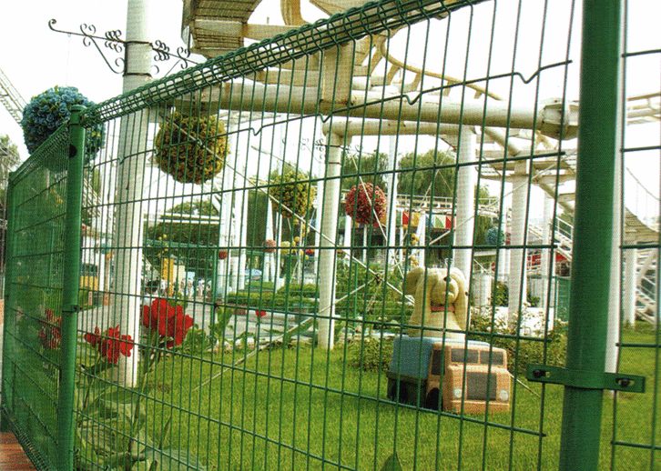 双圈护栏网是用冷拔低碳钢丝焊接成网筒状卷边与网面一体,采用镀锌进行防腐处理,具有很强的耐腐蚀性,然后进行喷、浸塑,各种颜色的喷、浸塑;最后连接附件与钢管支柱固定。经过几年的风霜雨雪,太阳的暴晒,还是光亮如新,抗紫外线能力极强。绿色的草坪在白色金属网的衬托下,显得清新整洁。