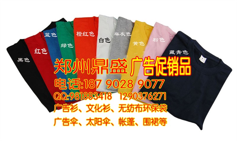 郑州广告衫厂家、广告衫定做批发、文化衫制作专业公司,鼎盛专业从事文化衫的设计和制作,文化衫均采用全棉汗布制作,从120克至254克共有10多个品种的克重规格,我们可以为客户提供包括刺绣、印刷和热转印等工艺的服务,欢迎企业、事业单位、社会团体及个人前来定制文化衫。我们将竭诚为您提供最为优质的文化衫服务。文化衫的含义已经超出了“衫”的意义,因为其是一个团体文化的集合,是文化的载体。文化衫是不缺创意的大众服饰,里面可以承载包括电影、音乐、娱乐、民族、时尚等各种文化元素。