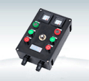 产品特点:CBFK8060 防爆控制箱适用于交流50Hz、220/380V,直流电压至220V的线路中,远距离集中控制多台电动机的起动与停止。 控制箱由增安型外壳,隔爆型元件(指示灯、电流表、按钮、开关)及接线端子等组成。 外壳采用玻璃纤维增强不饱和聚酯树脂模压而成。具有外壳美观耐腐蚀,抗静电耐冲击及热急定性好等优良性能。 内装元件直接卡在标准导轨上,元件上的凸起和导轨上的凹槽保证了内置元件安装的确定位置上,元件和元件之间最小中心距离为42mm. 可钢管或电缆布线。 该产品有多种变化,可根据用户提供的电气原理图而制作。 符合GB3836-2000,IEC60079标准要求。*由于控制箱元件布置千变万化,具有体元件排列要根据用户订货时提供的电气原理图,共同研究元件排列示意图或提出要求由我公司进行设计和制造。