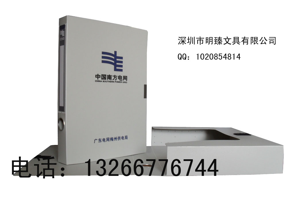 材质:档案盒采用优质环保耐用PP原材料生产,在档案盒封面丝印南方电网LOGO及名称。在档案盒书背处电压一透明标签袋,配指环孔,背条纸。功能:用于企业宣传,同时用于公司内部办公文件的存档及管理。