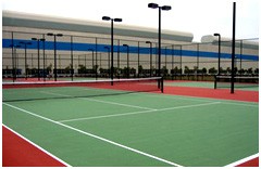 如果是两片或两片以上相连而建的并行网球场地,相邻场地边线之间的距离不小于3.66米。如果是室内网球场,端线6.40米以外的上空净高不小于6.40米,室内屋顶在网球上空的净高不低于11.50米。