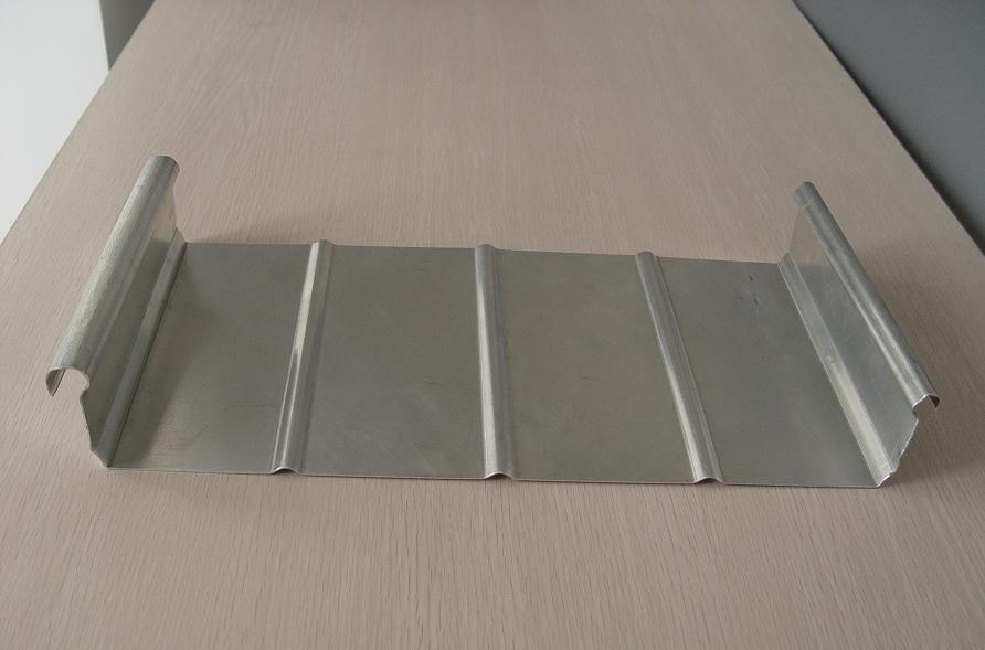 这个板型一种直立缝密的屋面系统,它有很好的观感和性能,安装时用机器把相邻的板边连续地卷合在一起,不需穿孔,板面保持完整,有极佳的防水性能。
