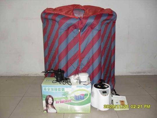 本产品为TUP材料,配一个1000W的中药熏蒸机。蒸汽桑拿浴箱是一种用于洗浴、健美、健身、防病、治病的高科技保健产品。它将中医的"熏洗疗法"、"热蒸汽疗法"有机的融为一体,具有调节阴阳,扶正祛邪、防病强身、保健抗衰作用,其明显的功效是:舒筋活血、滋润皮肤、减肥健身、排毒养颜,延缓衰老。 “蒸汽桑拿浴箱”,以热蒸汽为媒介,使用者通过皮肤的吸收、排泄功能被充分的调动,含有大量药物精华的水蒸汽进入人体,对皮肤组织进行深度清洗,洗浴者的呼吸、循环、消化、分泌、排泄系统在整体处于相对静态的状态下,功能活动增强,神经系统自律调节,精神自然放松,机体新陈代谢全面运转,生命媒体得到充分激活。