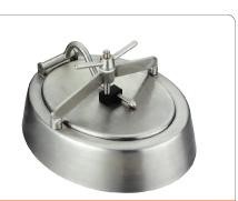 产品概述:所有压力容器或非压力容器人孔均采用快开式结构,开启方便、安全、外形美观实用,有方形、圆形,承受压力≤0.5MPa。广泛应用于移动罐和固定罐,此类人孔安装与不锈钢大罐及容器侧面,应用场合要求通向大罐及容器内部的途径可被锁住。内外镜面光洁度Ra≤0.8μm,内机械抛光与电抛光Ra≤0.2μm,外表面镜面抛光或亚光。