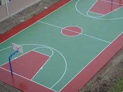 的消光效果,非常适合灯光球场合电视转播。通过调节反应体系中材料的配比,可得到不同柔性,不同韧性的耐冲击磨损面,适应不同球类运动对摩擦面的要求。