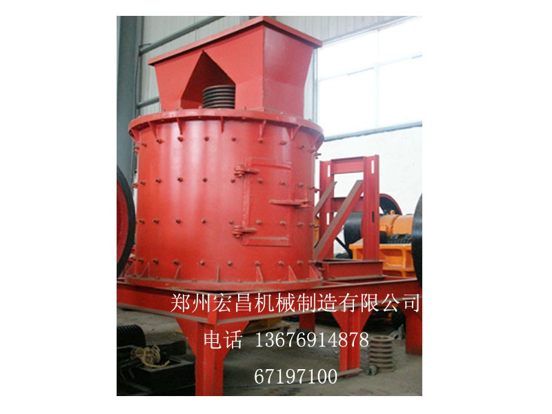 物料由机器上部垂直落入高速旋转的叶轮内,在高速离心力的作用下,与另一部分以伞状形式分流在叶轮四周的物料产生高速撞击与粉碎,物料在互相撞击后,又会在叶轮和机壳之间以物料形成涡流多次的互相撞击、摩擦而粉碎,从下部直通排出,形成闭路多次循环,由筛分设备控制达到所要求的成品粒度。