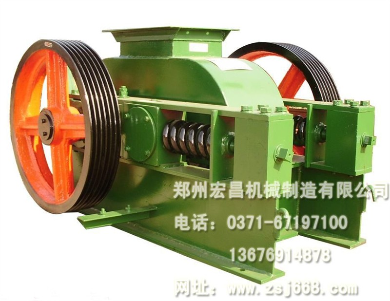 本机是利用两组独立传动的转辊,相向旋转产生的挤轧、磨、剪力来警碎物料。当物料进入机器的破碎腔以后,受到辊面的“咬入”力的作用,被逼通过两辊之间,同时受到辊面的挤轧、磨、剪力的共同作用,开始碎裂,破裂后的小颗粒沿着辊子旋转的切线方向,通过两转辊的间隙,向下方抛出。一般地说,进料粒度与破碎机的规格有关:辊径越大,辊缝越大,则允许的进料粒度越大,反之越小。破碎比为5的时候,破碎效果较好。