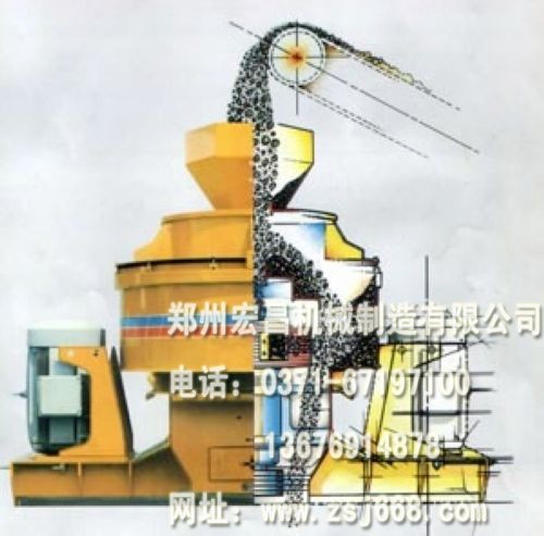 冲击式制砂机由进料、分料器、涡动破碎腔、叶轮体验、主轴总成、底座传动装置及电机等七部分组成.