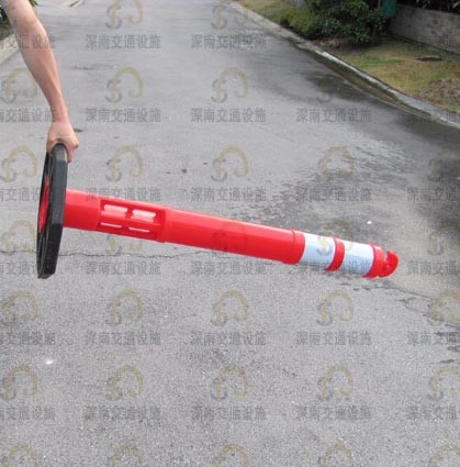 反光弹性警示柱又名反光标志、反光柱、柔性柱、标柱、弹力柱等,是一款集多种用途的产品。主体采用PE材料配以橡胶底座制作而成,款式新颖且设计独特,独有的倾复功能可以保护产品的持久耐用,如遭遇车辆撞击后不易造成对车辆表面的损坏,独有的环型顶部使之移动方便并且能随意自由搭配各种警示连杆及警示链条或者警戒带以起到防护及隔离的作用。