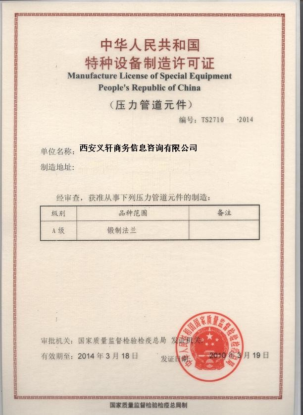 供应特种设备TS认证 详细信息