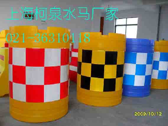 上海柯泉生产各种水马,防撞桶,防撞设施,防撞柱,隔离桶,隔离墩等。