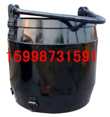 底卸式吊桶由桶身、桶梁、扇形闸门、闸门启闭手把及闭锁机构组成。