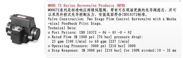 供应美国穆格MOOG 72 系列(MFB)伺服阀