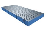 用于铆焊工艺的基础平板,工作面上有孔和T型槽,孔主要用来清理铆焊时的一些铁渣和焊接废弃物,T型槽主要是用来固定焊接件。