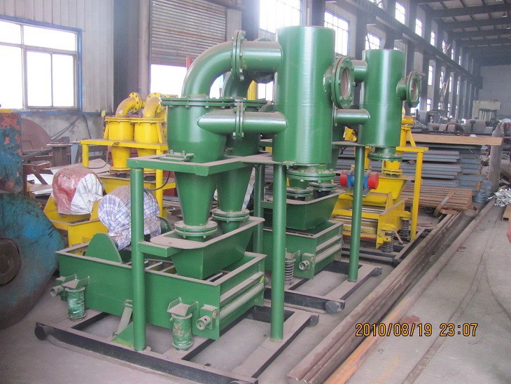 3、 旋流器底流配以细目震动筛该筛采用固定在筛箱上的振动电机直接震动,结构简单,安装方便,震动平稳,安全可靠。电机使用寿命长,排屑顺利,迅速,不跑液,网面上无堆屑现象。