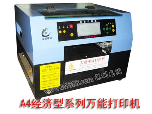 龙润万能平板打印机(数码印刷机)——可以在皮革、T恤、PVC、纺织布料、有机玻璃、金属、塑料、亚克力、水晶、木制品、铜版纸张等任意相对平面材质上,进行一次性多色、任意复杂色、过渡色印刷的数码印刷机,它不需要制版、套色和复杂的晒板程序,不会对材质造成损坏,