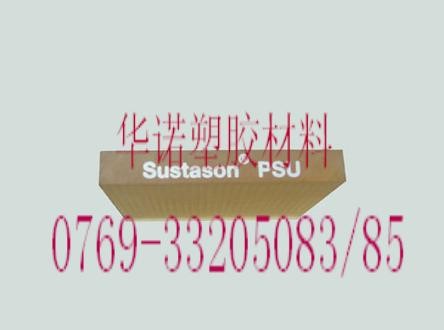 PSU(聚砜)是略带琥珀色非晶型透明或半透明聚合物,具有良好的辐射稳定性,较低的离子杂质和良好的耐化学及耐水解性能。特性:空气中最大允许工作温度非常高(可在15O度持续工作)。热稳定性高,耐水解,成型收缩率小, 无毒,耐辐射,耐燃,有熄性。在宽广的温度和频率范围内有优良的电性能。化学稳定性好在较宽的温度范围下机械强度好,刚性高。优秀的抗水解性,物理惰性,非常好的尺寸稳定性,半透明,不透光,抗紫外线,抗高能辐射,良好的电绝缘性能。应用:电子绝缘部件,食品加工设备上使用广泛,如机品械、泵阀、过滤器、换热器等,在与重复清洗消毒有关的医疗器械上也常常应用。规格:板材:厚x宽长=5~50mm x 620mm x 1000mm;棒材:直径x长=5~150mm x 1000mm.颜色:深黄色半透明  .产地:德国