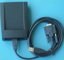 将读卡器连接线DB9针头插到电脑上串口上,将短的一头USB头插到电脑USB口上取电。将长的一头USB头插到读卡器上,读卡器将“滴滴”二声并闪灯一下,表示上电成功,连接示意图如下: