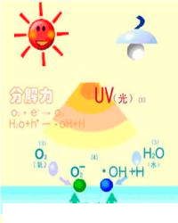 超强的氧化能力能造成细胞死亡,降低病毒的活性,并且捕捉、分解空气中的浮游细菌。有效除去大肠杆菌、黄葡萄球菌、白癣菌、徽菌、化脓菌、绿脓菌等细菌,抑制如肠病毒、流行性感冒、滤过性病毒等病原的传播。