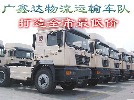 广鑫达物流有限公司系广州市交通系统现代物流运输企业,已建立现代化的管理体系和覆盖全国的服务网络并形成规模。公司经营业务:普通货物运输、货物托运,行李托运,小轿车运输,长途搬家搬厂迁址,水果蔬菜运输,日用品运输,汽车运输等多种货物运输,运输整个过程提供快速信息查询服务,让您掌握及时运输信息。公司能为各类企业广大客户提供运输、储存、配送等一流服务。公司特设深圳至北京专线、深圳至上海专线整车,零担物流配载业务,欢迎各生产企业来人,来电洽谈.我们将以:最低的价格,最快的速度,最好的服务,尊客爱货,顾客至上,与您满意合作,达到共盈。