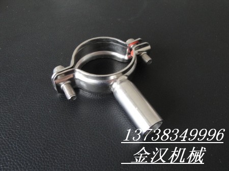 组成:主要由两个半圆不锈钢片、两个螺栓、一个垫圈(一般为红色)和一个支撑的钢管。