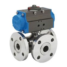 产品特性:气动三通球阀可分为L形和T形,L形(Q44F)三通球阀用于介质流向的切换,能使相互垂直的两个通道连接;T形(Q45F)三通球阀用于介质分流、合流及流向切换。T形三通可以使三个通道相互连通或使其中的两个通道连通。三通球阀一般采用两阀座结构,亦可根据用户要求采用四阀座结构。