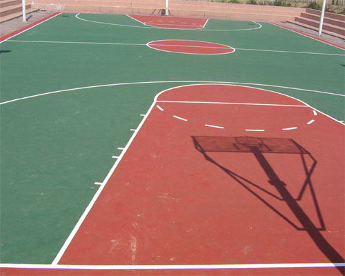 丙烯酸划线漆是具有高反射性的纯丙乳胶,特殊配方令球场白线醒目、耐磨。弹性丙烯酸面层属高档球场面层,需要增加多层丙烯酸弹性胶粒层,面层有弹性,具有良好的减震效果,使运动者更感舒适。施工厚度可根据需要达到3 10mm。