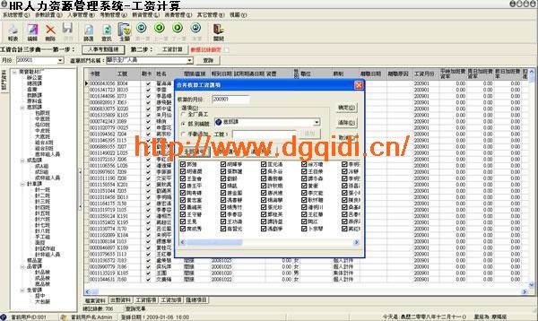 HR的工资计算不但可以与平时考勤资料联系外,还可以与人事档案中的一些专案进行挂钩计算。本模块用于统计当月全部人员,部门或个人的工资,以及工资报表的生成。