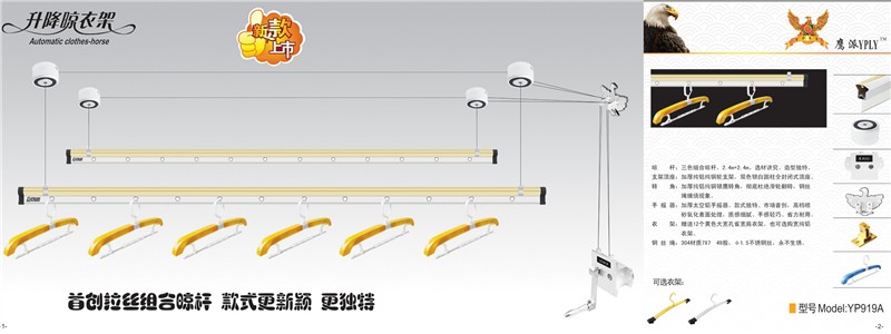 浙江永康鹰派五金(www.cnyingpai.com)是一家专业生产各种升降晾衣架的企业,产品包括电动系列、手摇系列、落地系列、户外推拉系列。产品时尚、款式新颖、质量上乘、品类齐全。欢迎来电咨询订购!