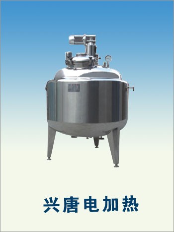 该电加热搅拌罐为上开启式结构,具有可加热自动控温、保温、搅拌功能;传热快、适应温差大、清洗方便等优点。广泛应用于食(乳)品、制药、日化、饮料、油脂、化工、颜料等行业做为加热、混合调配或杀菌处理。特别适合于无蒸汽热源的单位与科研机构的小、中试使用。并可按工艺需要采用全封闭式结构。二、主要技术及结构性能: 1、容积:50L、100L、200L、300L、500L、600L、1000L~5000L。2、加热方式:采用电热棒插入夹套内,加热均匀无冷区。夹套内注入导热油或水为加热介质,产生热能对罐内物料进行加热。3、物料加热温度:≤100℃;物料加热时间:30min~90min(视工艺需要)。4、温度控制:采用电热偶测量温度与温控仪连接进行测控温度,并可调节物料温度的高低。5、罐体:内表面镜面抛光处理,粗糙度Ra≤0.4μm。6、上盖:为两扇可开式活动盖,便于清洗,内外表面镜面抛光处理(粗糙度Ra≤0.4μm)。7、内罐底结构:经旋压加工成R角,与内罐体焊接、抛光后无死角,放净物料无滞留。8、夹套形式:全夹套,用于加入导热油或水,使工作时达到最佳升温和降温的目的。9、保温材料:采用填充珍珠棉、岩棉或聚氨酯浇注发泡,保持与外界的温差,达到隔热保温效果。10、外壳体表面处理方式:镜面抛光或2B原色亚光或2B磨砂面亚光处理。11、搅拌装置:顶部中心搅拌,减速机输出轴与搅拌桨轴采用活套连接,方便拆装与清洗。12、搅拌转速:15~120r/min(定速);搅拌桨形式:框式、锚式、桨叶式、涡轮式等(按工艺要求)。13、支脚形式:圆管式或悬挂支耳式。14、设备配置:电气控制箱、温控仪、料液进出口、介质进出口(进、排油)、放空口(溢油孔)等。15、材质:内罐体SUS304或SUS316L;夹套为Q235-B或SUS304;外保护壳体为SUS304。16、各进出管口工艺开孔与内罐体焊接处均采用翻边工艺圆弧过渡,光滑易清洗无死角,外表美观。