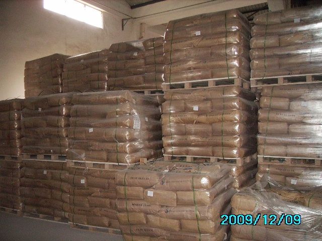 包装及储藏:本产品包装为免熏蒸木制托盘,每托盘净重750kg或1000 kg,每包采用有内衬塑料袋的编织袋包装,每袋净重25kg。。我公司可根据用户要求提供其它包装方式及规格。本产品可用汽车、火车、轮船等运输,在运输过程中要防晒、防雨、防潮、防钩。不得与碱类及氧化剂混装。