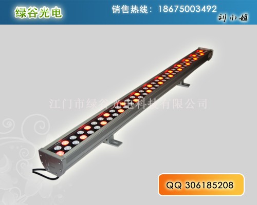 大功率LED洗墙灯是一种以大功率LED为光源,由红、绿、蓝组成混合颜色变化的投射照明灯具,可产生256灰度变化,智能控制器达到同步效果,并可接入DMX控台。用户可自己输入资料进行编程控制。该洗墙灯采用数码管地址,同时该洗墙灯内置固定程序,可实现同步、自联功能。该洗墙灯密封可靠,可调节投光角度、位置,使之处于最佳位置,达到最满意的照明效果。(缔造绿色低碳生活,选用绿谷LED灯饰)