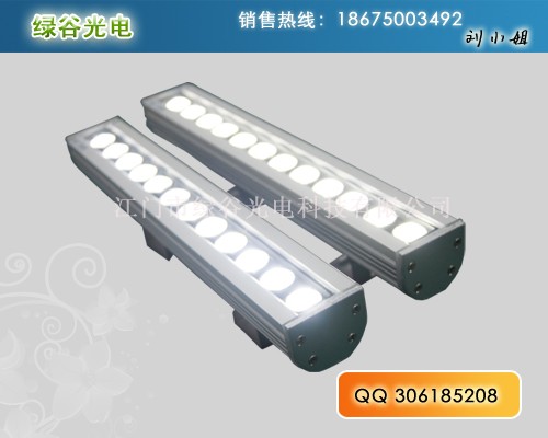 大功率LED洗墙灯是一种以大功率LED为光源,由红、绿、蓝组成混合颜色变化的投射照明灯具,可产生256灰度变化,智能控制器达到同步效果,并可接入DMX控台。用户可自己输入资料进行编程控制。该洗墙灯采用数码管地址,同时该洗墙灯内置固定程序,可实现同步、自联功能。该洗墙灯密封可靠,可调节投光角度、位置,使之处于最佳位置,达到最满意的照明效果。(缔造绿色低碳生活,选用绿谷LED灯饰)