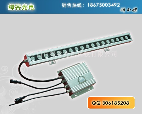 大功率LED洗墙灯是一种以大功率LED为光源,由红、绿、蓝组成混合颜色变化的投射照明灯具,可产生256灰度变化,智能控制器达到同步效果,并可接入DMX控台。用户可自己输入资料进行编程控制。该洗墙灯采用数码管地址,同时该洗墙灯内置固定程序,可实现同步、自联功能。该洗墙灯密封可靠,可调节投光角度、位置,使之处于最佳位置,达到最满意的照明效果。(缔造绿色低碳生活,选用绿谷LED灯饰)