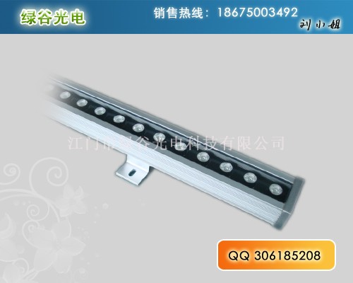 大功率LED洗墙灯是一种以大功率LED为光源,由红、绿、蓝组成混合颜色变化的投射照明灯具,可产生256灰度变化,智能控制器达到同步效果,并可接入DMX控台。用户可自己输入资料进行编程控制。该洗墙灯采用数码管地址,同时该洗墙灯内置固定程序,可实现同步、自联功能。该洗墙灯密封可靠,可调节投光角度、位置,使之处于最佳位置,达到最满意的照明效果。(缔造绿色低碳生活,选用绿谷LED灯饰)